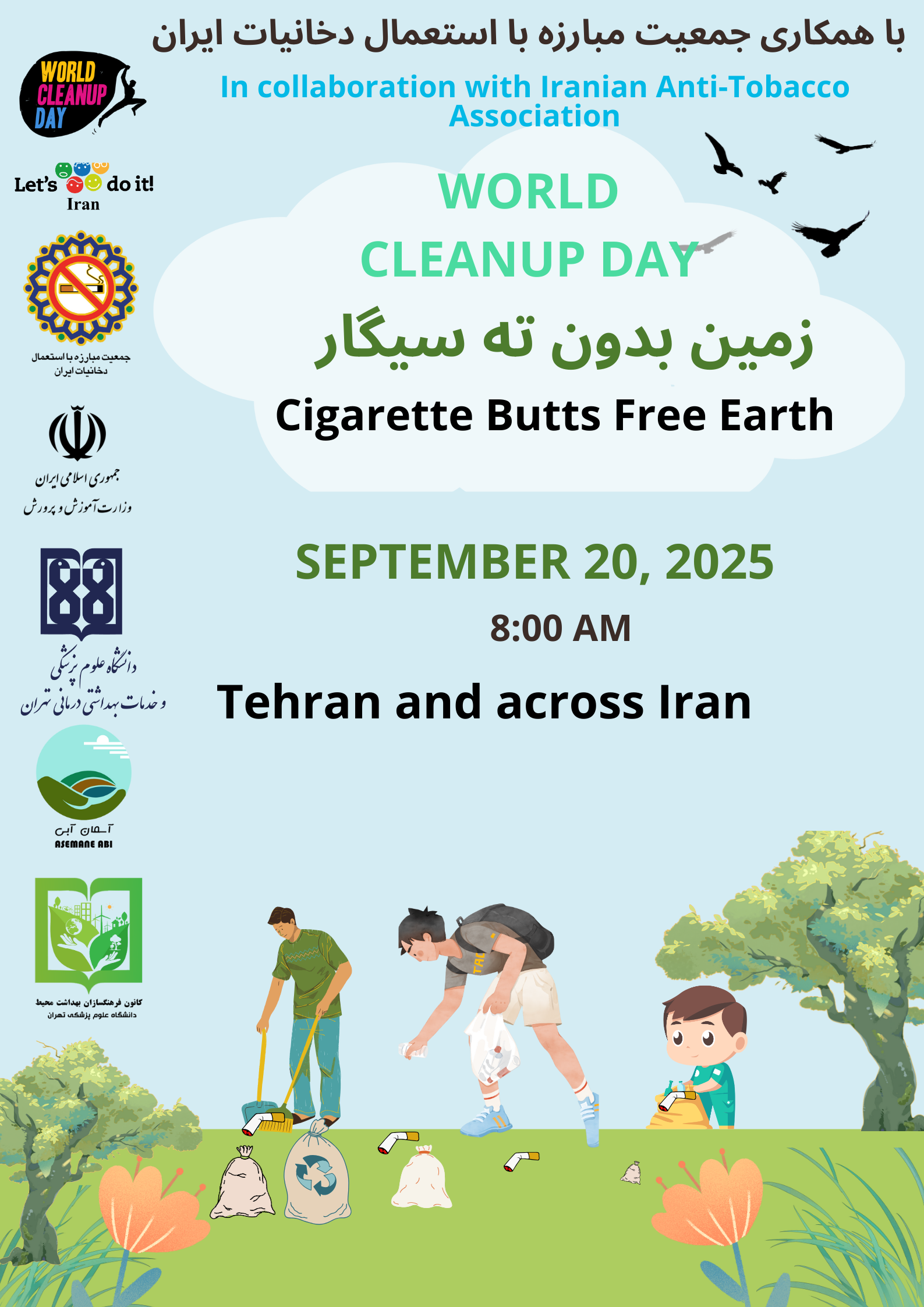 In observance of World Cleanup Day, Iranian citizens across multiple cities actively participated in cigarette butt collection campaigns under the slogan “A World Without Cigarette Butts”, with the support of the Iranian Tobacco Control Society. These initiatives aimed to promote environmental responsibility, raise awareness about the harmful impacts of cigarette filters, and foster a cleaner and healthier urban environment.