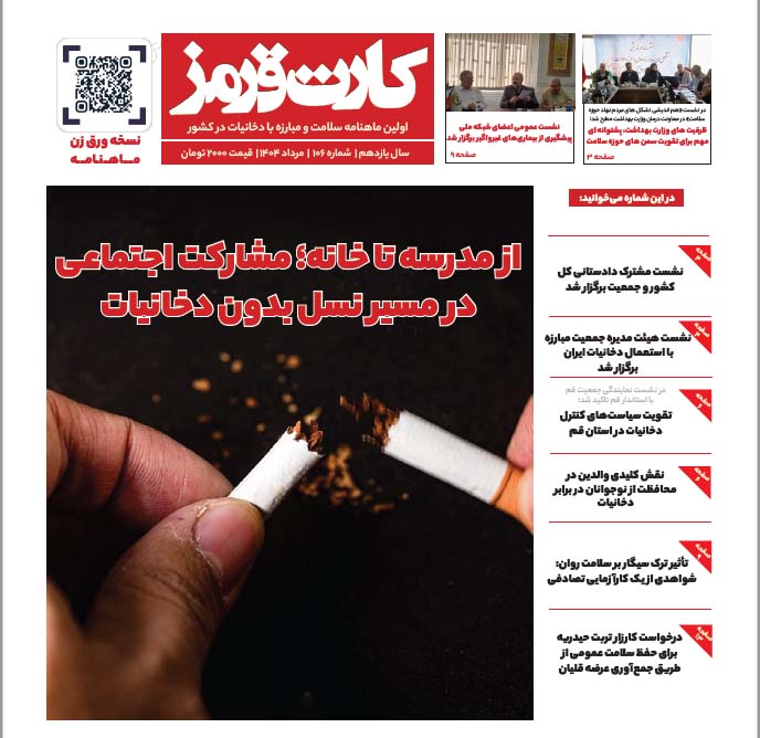 کارت قرمزویژه نشریه کارت قرمز شماره ۱۰۶ اولین ماهنامه سلامت و مبارزه با دخانیات کشور -شماره 106 فریده خدادادی3 روز پیش 12 کمتر از یک دقیقه واتس آپ تلگرام اشتراک گذاری از طریق ایمیل چاپ دانلود نشریه کارت قرمز شماره ۱۰۶ لینک نسخه ورق زن نشریه: http://online.flipbuilder.com/akctx/dopi/ برچسب هاred card اولین ماهنامه سلامت و مبارزه با دخانیات کشور کارت قرمز شماره 106 فریده خدادادی3 روز پیش 12 کمتر از یک دقیقه واتس آپ تلگرام اشتراک گذاری از طریق ایمیل چاپ اشتراک گذاری فیس بوک واتس آپ تلگرام اشتراک گذاری از طریق ایمیل چاپ