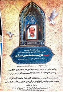 با نهایت تأثر و تأسف،درگذشت جانباز سرافراز دفاع مقدس حاج سید محمد معین شیرازی، فرزند گرانقدرتان را تسلیت و تعزیت عرض مینماییم.