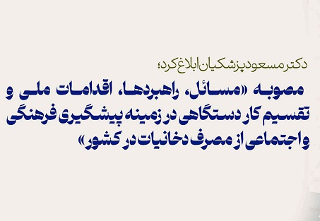 مصوبه «مسائل، راهبردها، اقدامات ملی و تقسیم کار دستگاهی در زمینه پیشگیری فرهنگی و اجتماعی از مصرف دخانیات در کشور»